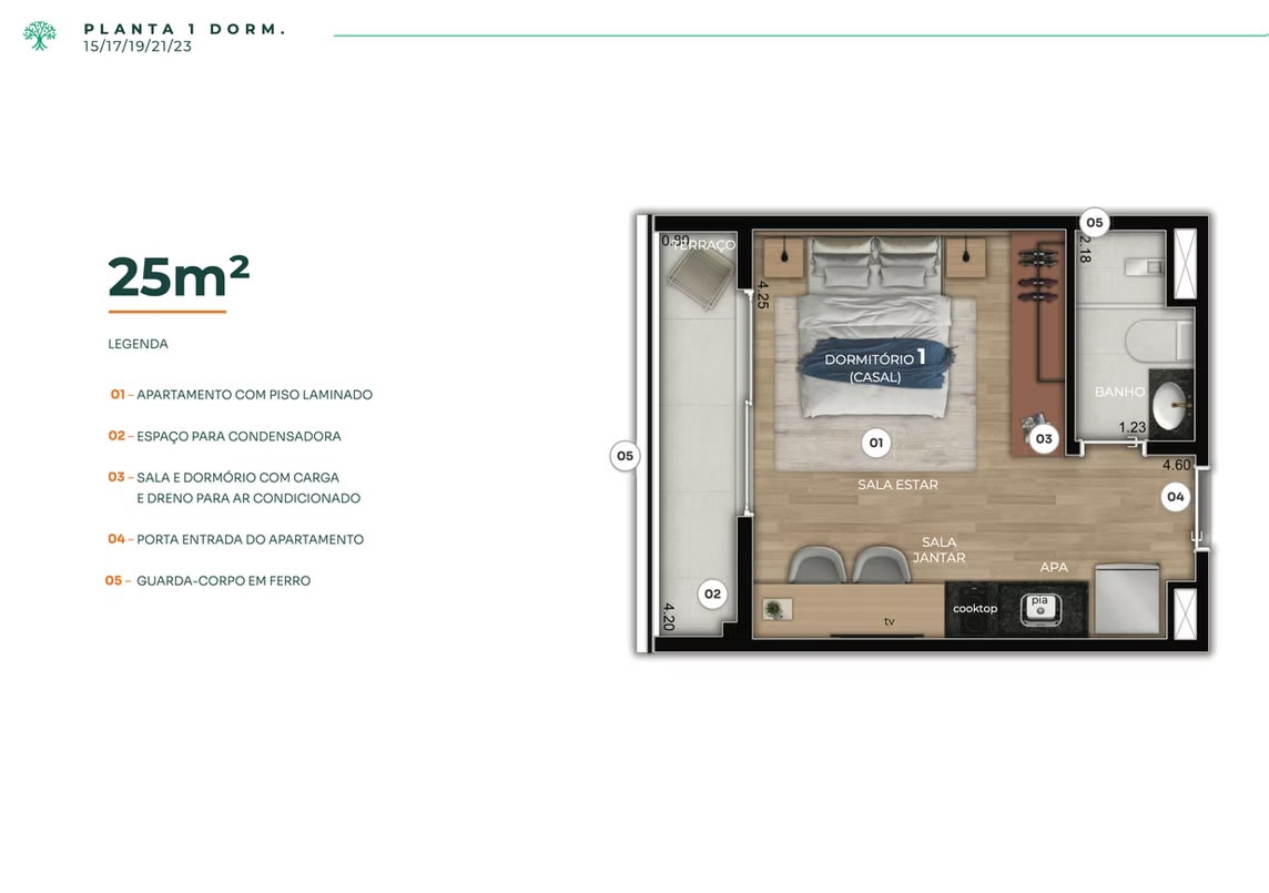 1 torre, 376 unidades + 2 lojas + 1 nR, 17 andares, 66 vagas, + de 20 itens de lazer em + de 1.000m² de área, 1 e 2 dorms.